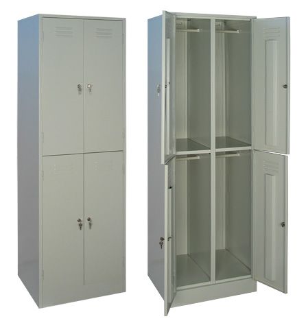 Вариантов металлических шкафов может быть множество: одинарные, двойные, разделенные пополам, с замками или без.
